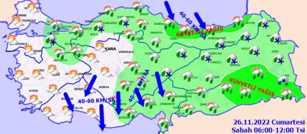 Adıyaman, Amasya, Artvin, Bingöl, Bitlis, Diyarbakır, Elazığ, Giresun, Hakkari, Kayseri, Malatya, Mardin, Niğde, Ordu, Rize, Samsun, Siirt, Sivas, Tokat, Trabzon, Tunceli, Van, Yozgat, Batman ve Şırnak için sarı kodlu uyarı verildi.
