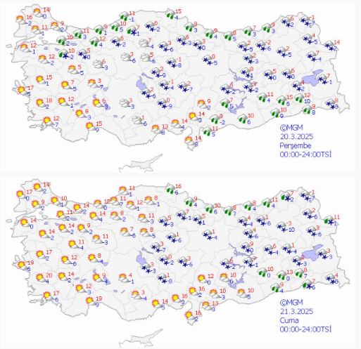 Meteoroloji Genel Müdürlüğü, sıcaklıkların 20 derece birden düşeceğini ve birçok bölgede fırtına ve kar yağışının görülebileceğini duyurdu.