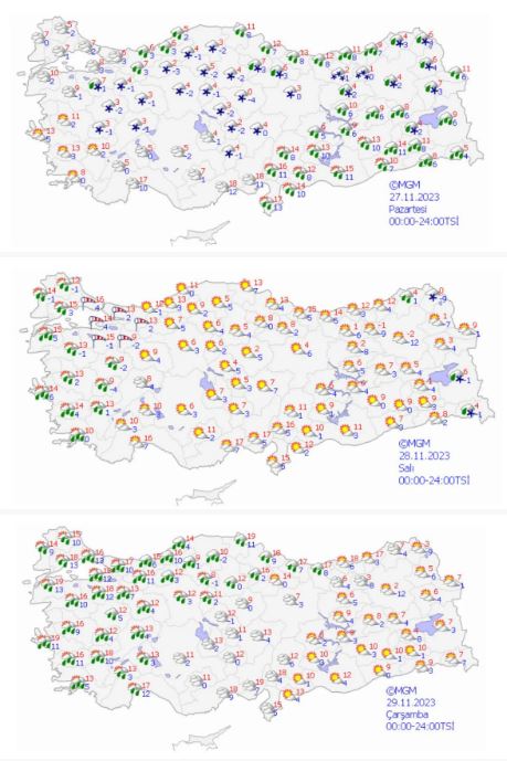 Meteoroloji Genel Müdürlüğü, yeni bir tahmin haritası yayınladı.