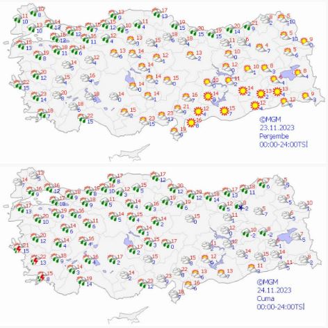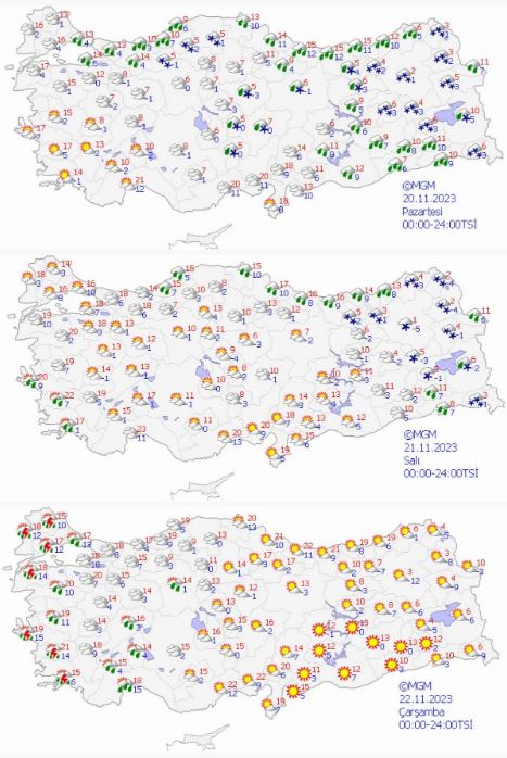 Buna göre bugün 20 il için sarı ve turuncu kodlu uyarı verildi.