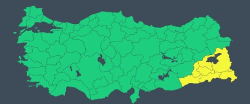 Uyarı verilen iller arasında, Bitlis, Mardin, Şırnak, Van, Hakkari ,Siirt, Batman yer aldı.