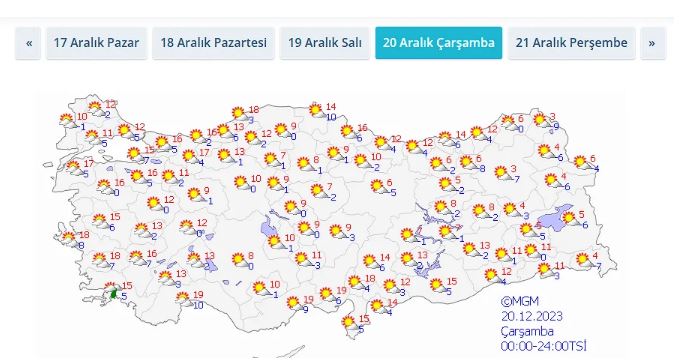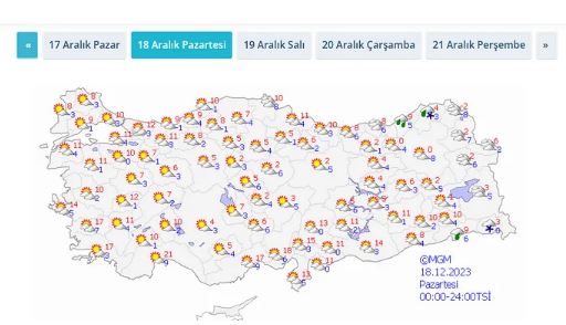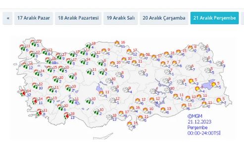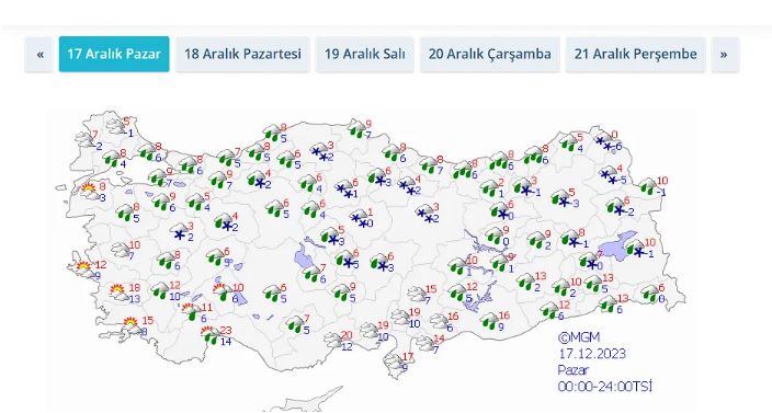 17 Aralık Pazar gününe ilişkin hava durumu açıklandı. Güncel Meteoroloji verilerine göre, bugün yurdun iç ve yüksek kesimlerinde kar yağışı etkili olacak, birçok şehirde ise yağmur bekleniyor.