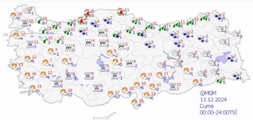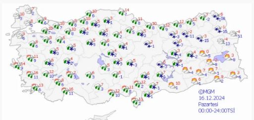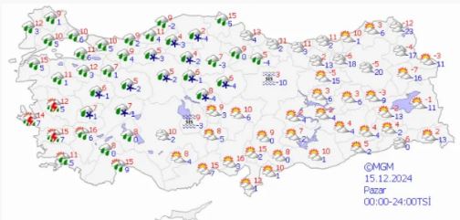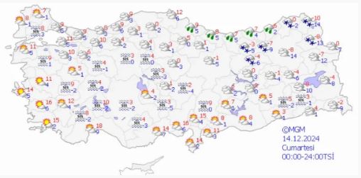 Meteorolojiden yapılan açıklamada hava durumu tahminleri yayınladı.