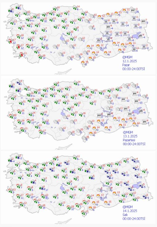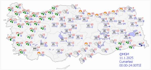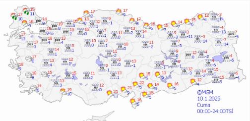 Meteoroloji tarafından yapılan son tahminlere göre; ülkemizin iç ve batı kesimlerinin parçalı yer yer çok bulutlu, Edirne ve Kırklareli çevreleri ile Çanakkale’nin güneyi ve Balıkesir’in güneybatı ilçelerinin sağanak yağışlı, diğer yerlerin az bulutlu ve açık geçeceği tahmin ediliyor.