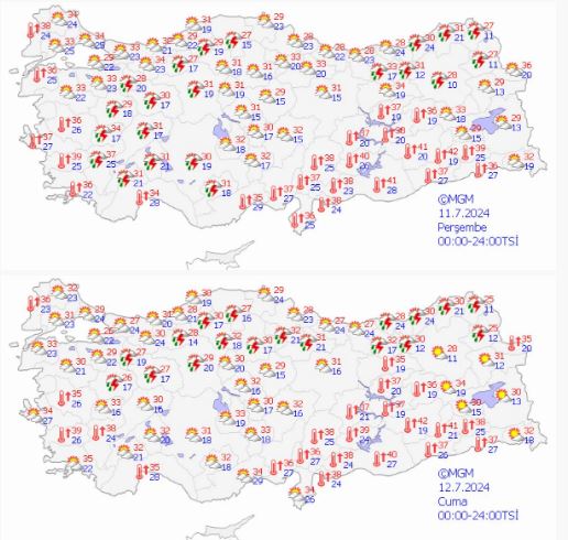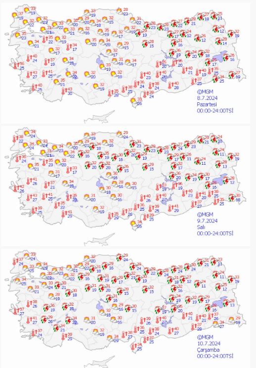 Öğle saatlerinden itibaren Bayburt, Erzurum, Erzincan, Kars, Ağrı, Ardahan, Van'ın güney ve doğusu ile Bingöl ve Muş'un kuzey kesimlerinde yerel olarak kuvvetli sağanak ve gök gürültülü sağanak olacağı tahmin ediliyor.