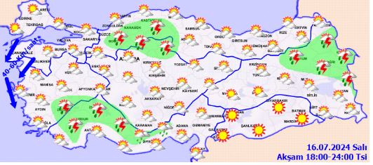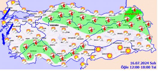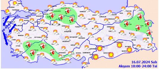 Meteoroloji Genel Müdürlüğü'nün değerlendirmesine göre, ülkemizin genelinde hava parçalı ve yer yer çok bulutlu olacak. Ayrıca, Ege'nin güneydoğusu, Batı Akdeniz'in iç kesimleri, Doğu Akdeniz'in Toroslar kesimi, İç Anadolu'nun kuzeydoğusu, Karadeniz'in iç kesimleri (özellikle Sinop ve Samsun çevreleri), Doğu Anadolu'nun kuzeyi yerel sağanak ve gök gürültülü sağanak yağışlarla geçecek.