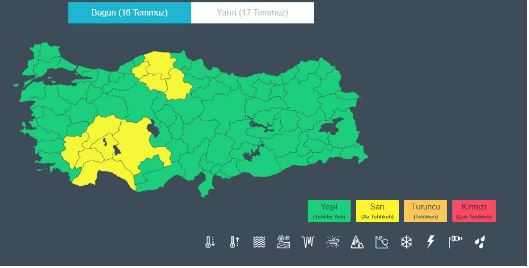 MGM tarafından bugün için 10 ile sarı kodlu sağanak yağış uyarısı yapıldı.