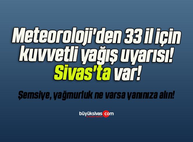 Meteoroloji'den 33 il için kuvvetli yağış uyarısı! Sivas'ta var!