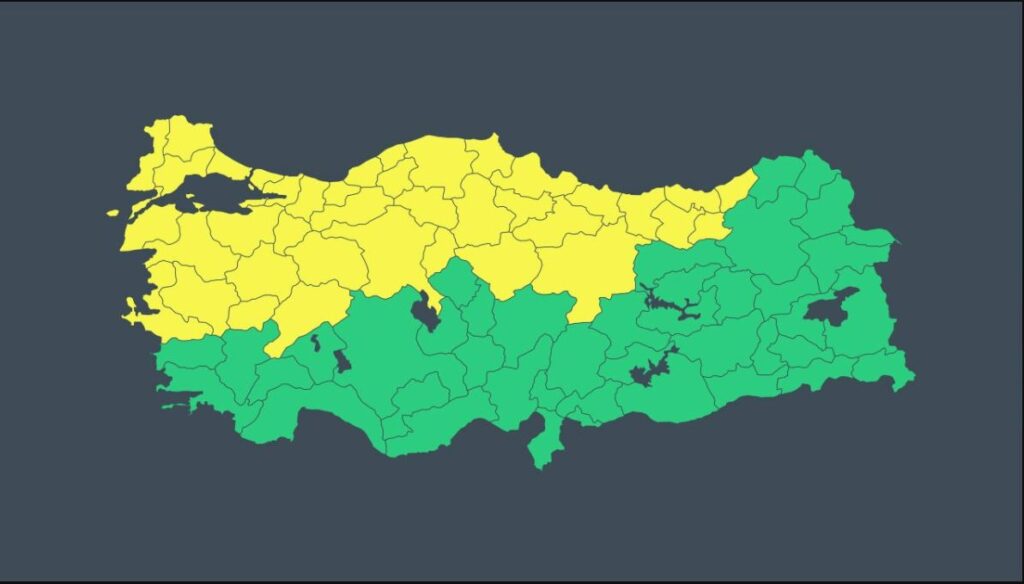 Kuvvetli rüzgar ve fırtınanın etki göstereceği 39 kente sarı kod uyarısı gönderildi.