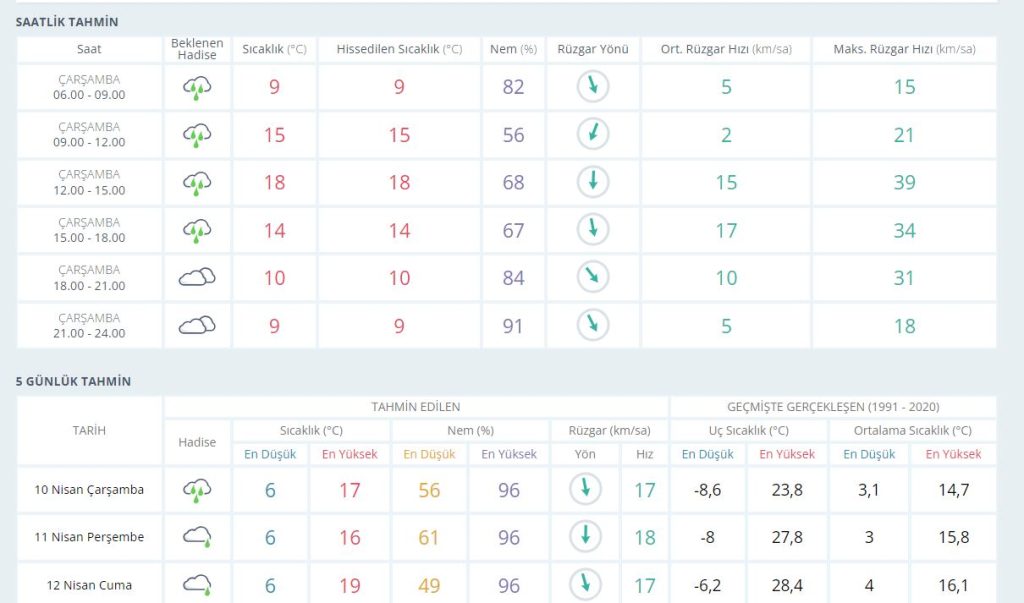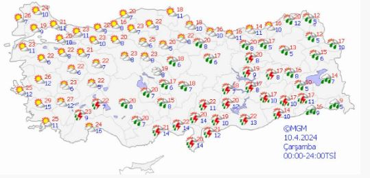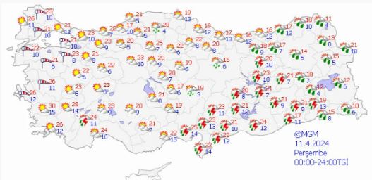 Meteoroloji Genel Müdürlüğü'nden yapılan açıklamada, "Aralıklı ve yerel olarak kuvvetli sağanak ve gök gürültülü sağanak yağış beklendiğinden sel, su baskını, ulaşımda aksamalar, yıldırım, dolu yağışı, yağış anından kuvvetli rüzgar gibi olumsuzluklara karşı dikkatli ve tedbirli olunmalıdır" denildi.