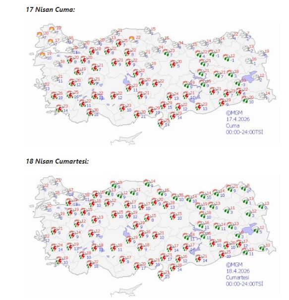 Hafta boyunca sıcaklıkların 4 ila 6 derece artacağı tahmin edilirken, iç kesimlerde hava sıcaklıklarının 25 ila 30 dereceye kadar çıkabileceği öngörülüyor. Batı bölgelerde parçalı ve az bulutlu hava etkili olurken, doğu ve güney kesimlerde aralıklarla sağanak yağışların devam etmesi bekleniyor.