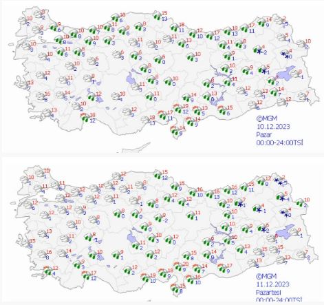 Meteoroloji Genel Müdürlüğü tarafından yapılan son değerlendirmeye göre; ülkemiz genelinin parçalı ve çok bulutlu, Marmara, Ege, Akdeniz, İç Anadolu'nun kuzey ve doğusu, Batı Karadeniz'in batısı, Orta Karadeniz'in iç kesimleri, Doğu Karadeniz'in doğusu, (Erzincan hariç) Doğu Anadolu , (Ş.Urfa hariç) Güneydoğu Anadolu'nun yağışlı geçeceği tahmin ediliyor.
