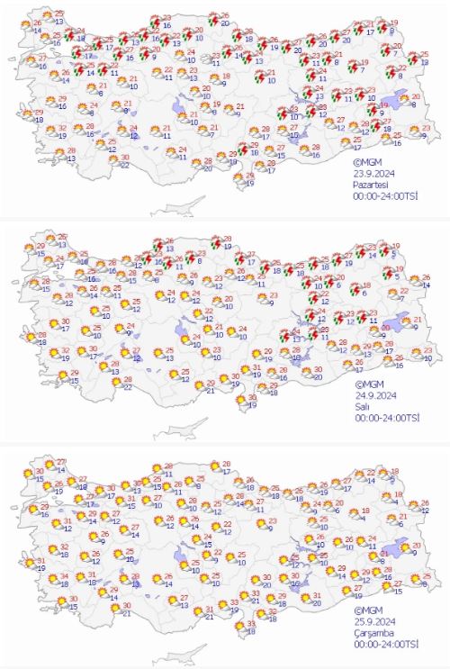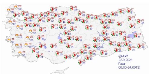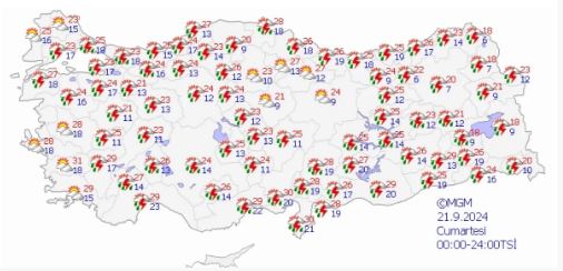 Meteoroloji Genel Müdürlüğü tarafından bildirilen hava durumu raporlarına göre, Türkiye genelinde parçalı ve çok bulutlu bir hava hakim olacak.