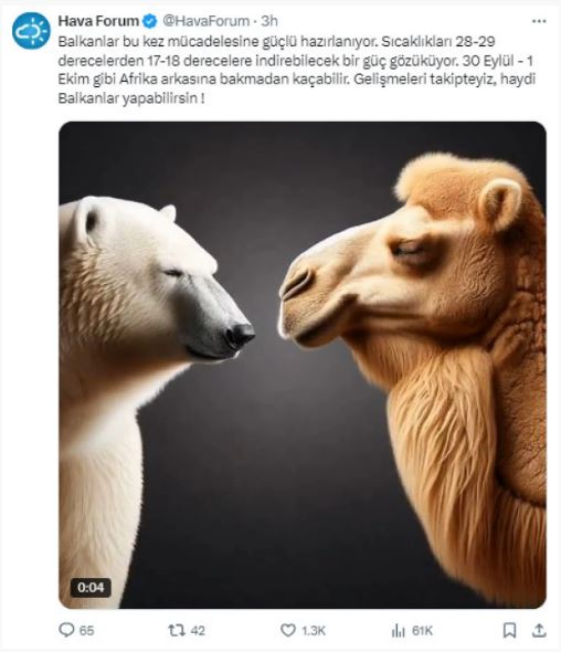 “Balkanlar bu kez mücadelesine güçlü hazırlanıyor. Sıcaklıkları 28-29 derecelerden 17-18 derecelere indirebilecek bir güç gözüküyor. 30 Eylül - 1 Ekim gibi Afrika arkasına bakmadan kaçabilir. Gelişmeleri takipteyiz, haydi Balkanlar yapabilirsin!”