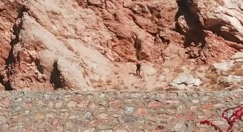 Sivas’ta yaklaşık 100 metre yüksekliğinde bir kayada mahsur kalan köpeği itfaiye ekipleri nefes kesen operasyonla kurtardı.