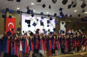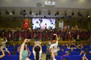 Öğrenciler mezuniyet mutluluğunu keplerini havaya fırlatarak kutladı. iha