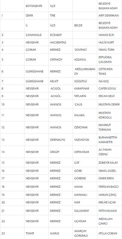 MHP, 31 Mart 2024 Mahalli İdareler Seçimlerinde 8. etap olarak adaylıkları kesinleşen 1 Büyükşehir İlçe, 2 İlçe Belediye 52 Belde Belediye Başkan olmak üzere toplam 55 adayın daha isimlerini açıkladı.