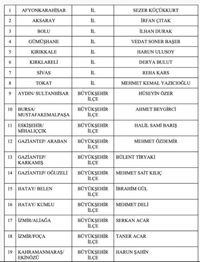 İsimler, MHP Genel Başkan Yardımcısı Sadir Durmaz tarafından kamuoyu ile paylaşıldı.