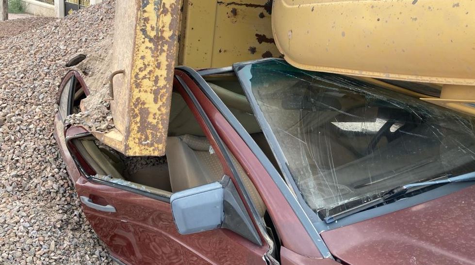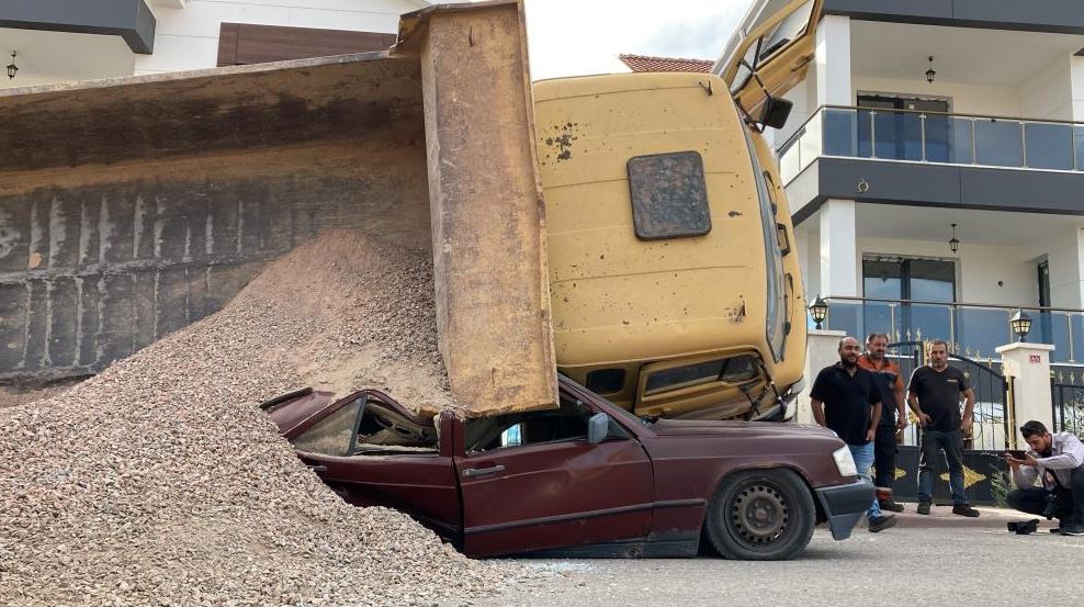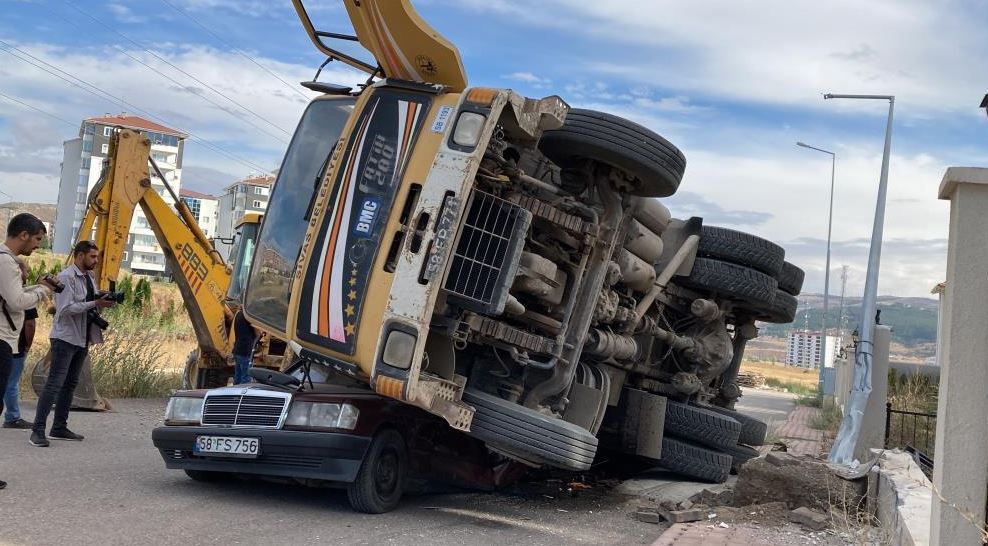 Edinilen bilgiye göre, olay, Eğriköprü Mahallesinde meydana geldi. Sivas Belediyesi’ne ait mıcır yüklü BMC marka 58 FB 771 plakalı kamyon kayarak tonlarca mıcırla birlikte yol üzerinde bulunan 58 FS765 plakalı Mercedes marka otomobilin üzerine devrildi.
