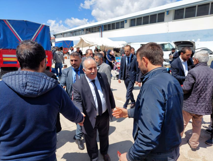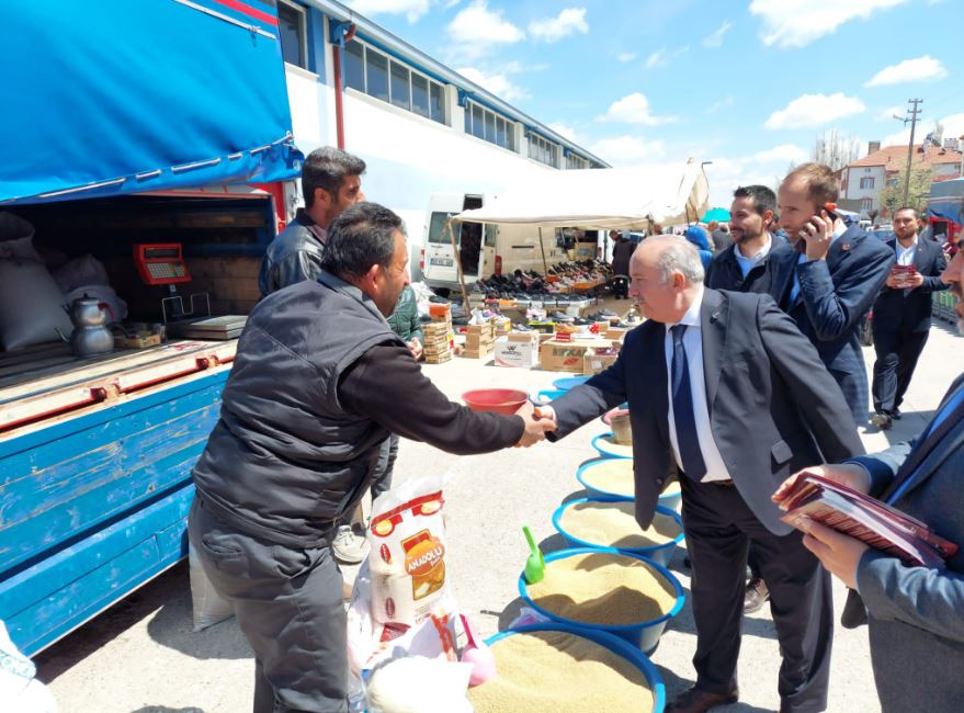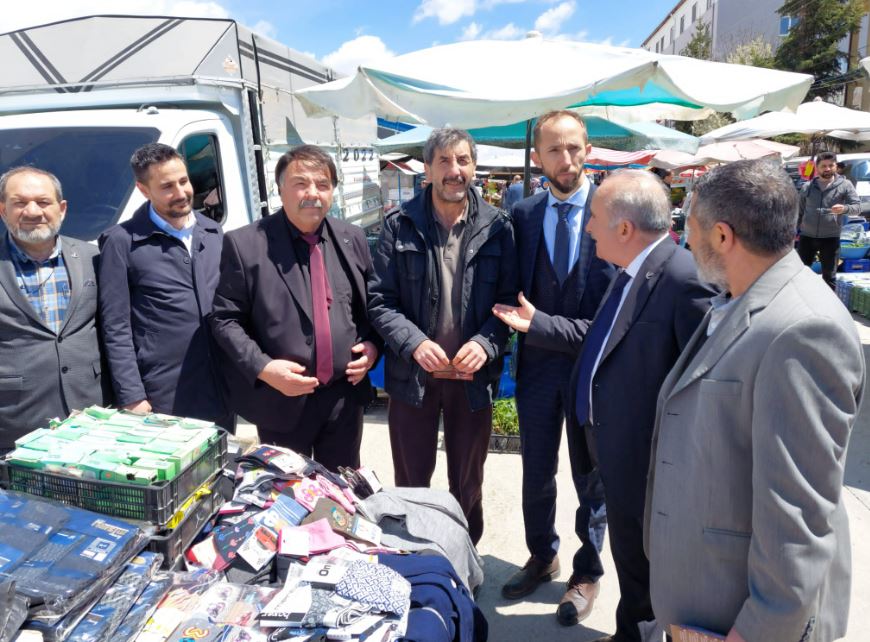 Şarkışla pazar yerinde vatandaşlarla ve esnaf ile görüşen heyet vatandaşların taleplerini dinledi.