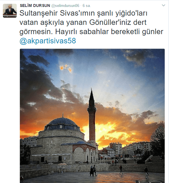 Bu kapsamda, bugün twitter hesabından Sivas ile ilgili paylaşımda bulunan Milletvekili Selim Dursun, şu ifadelere yer verdi: