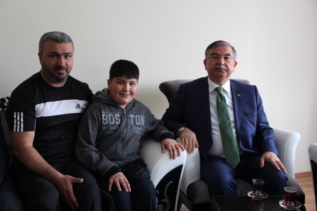 Bakan Yılmaz, daha sonra, rahatsızlığı dolayısıyla Cumhuriyet Üniversitesi Tıp Fakültesi Hastanesi'nde geçirdiği ameliyatın ardından evinde istirahat eden Anadolu Ajansı muhabiri Halife Yalçınkaya'yı ziyaret etti.(AA)