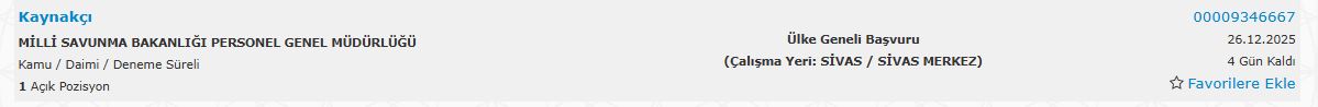 MSB’nin Sivas’taki bu personel alımı, daimi istihdam imkânı sunması nedeniyle yoğun ilgi görmesi beklenen ilanlar arasında yer alıyor. Adayların başvuru şartlarını dikkatle inceleyerek süreci takip etmeleri istendi.