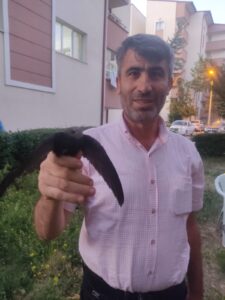 Sivas’ta evinin bahçesinde otururken, ömrü havada geçen Ebabil kuşunu bitkin ve uçamayan halde yerde buldu, Ebabil kuşunu çiğ et ile besleyerek doğaya bıraktı.