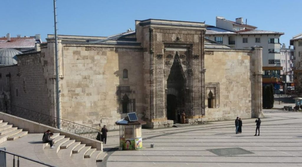 Sivas tarihi kent meydanında bulunan ve mimarı bilinmeyen Buruciye Medresesi, simetrisiyle görenleri kendine hayran bırakıyor.