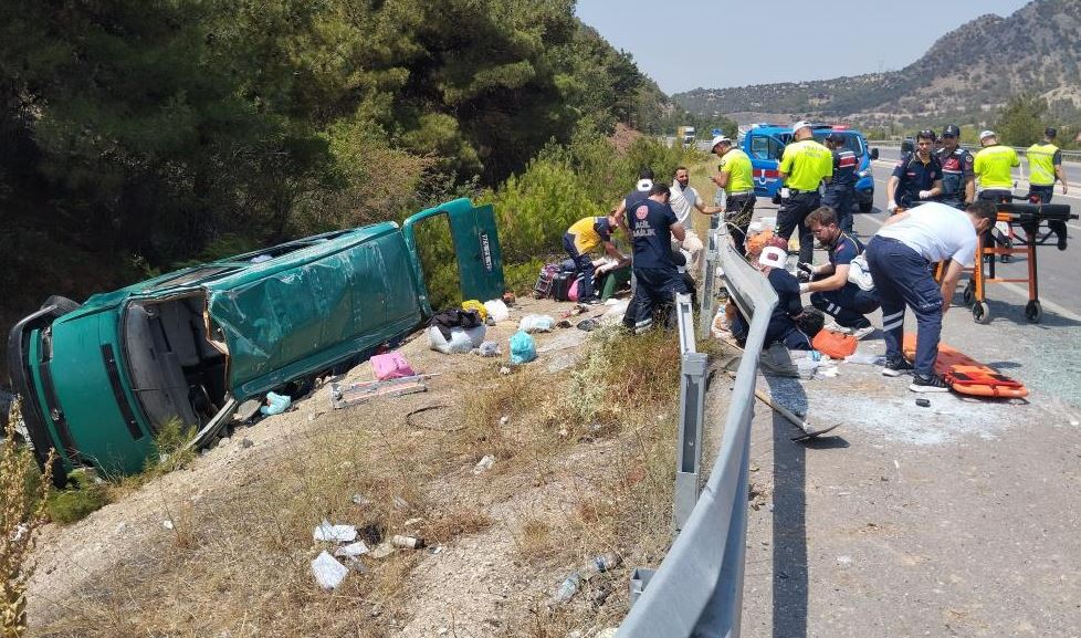 Sivas'ta yoldan çıkan minibüs takla attı: 13 yaralı