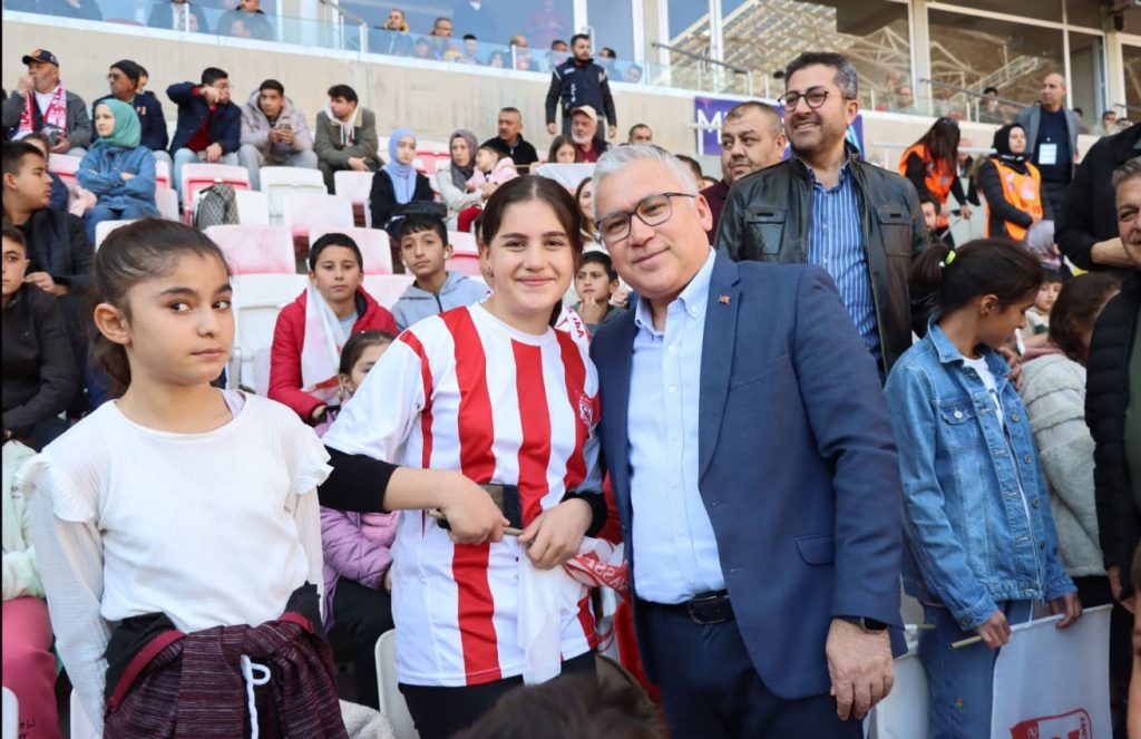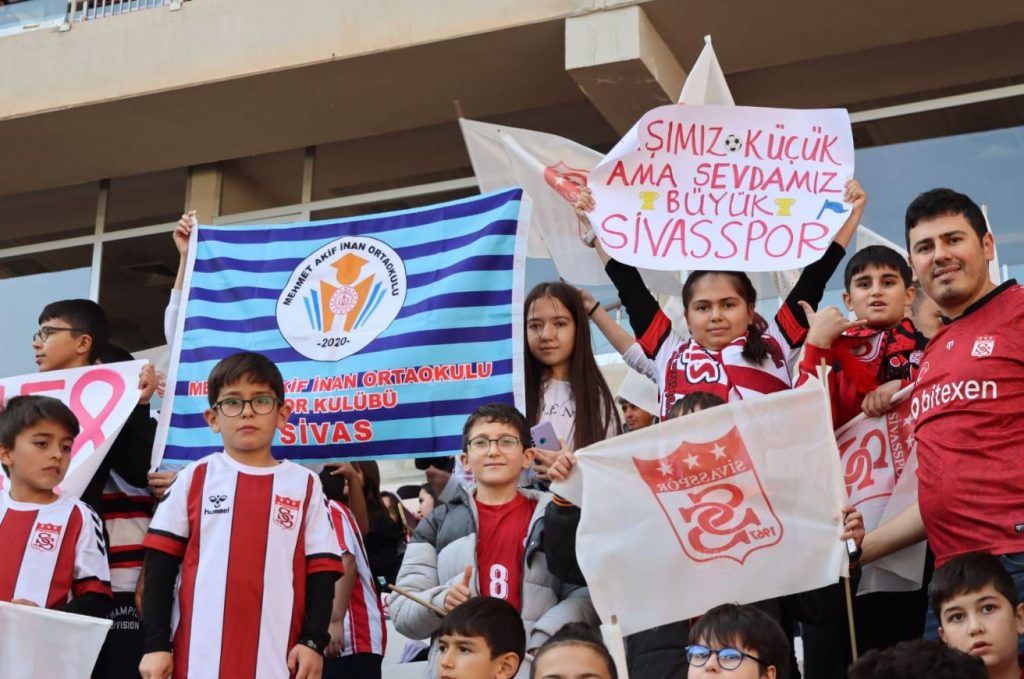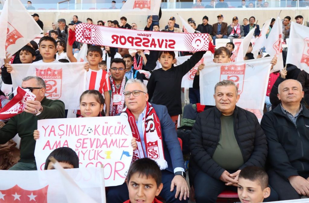 Sivas Valisi Dr. Yılmaz Şimşek, İl Emniyet Müdürü Burhan Akçay ve İl Jandarma Komutanı Albay Adem Taşkın ile birlikte zorlu mücadeleyi izleyen Minik Yiğidolar, 90 dakika boyunca yaptıkları coşkulu tezahüratlarla takımlarına destek oldu.
