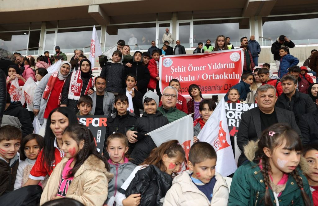 Sivas Valisi Dr. Yılmaz Şimşek, Net Global Sivasspor ile Atakaş Hatayspor arasında oynanan karşılaşmayı minik Yiğidolar ile birlikte tribünden takip etti.