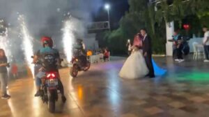 Yaklaşık 30 motosikletten oluşan düğün konvoyu, ortaya renkli görüntüler çıkardı. Motorcu konvoyu, vatandaşların büyük ilgisiyle karşılaştı. Düğün salonunda da halay ve çiftetellinin yerini motosiklet şovu aldı. Motorcuların gösterisi davetlilerden alkış aldı. iha