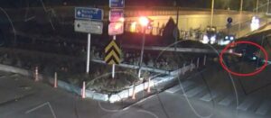Eskişehir’de bir motosiklet sürücüsünün kontrolü kaybederek düşme anı Kent Güvenlik Yönetim Sistemi (KGYS) kamerasına yansıdı.