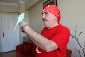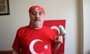 Sivas’ta Japon isimli muhabbet kuşu, "Muhsinler ölmez vatan bölünmez" ve "Muhsin başkan ruhun şad olsun" diyor.