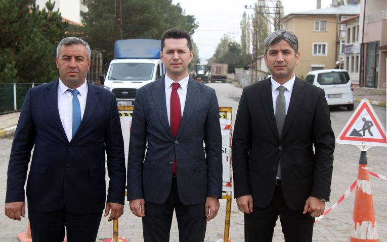 Kaymakam Yusuf Keten, Belediye Başkanı Harun İsa Gültay, AKSA Sivas Doğalgaz Şirket Müdürü Resul Korkmaz, Atatürk Caddesi'nden başlayan kazı çalışmalarını yerinde inceledi.
