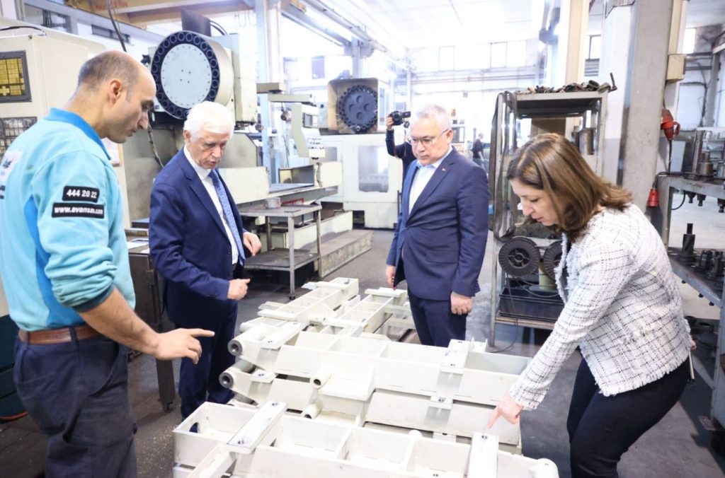 Türkiye'nin önde gelen takım tezgahları üreticilerinden olan Uzay Makina fabrikasında incelemelerde bulunan Vali Şimşek, firma sahibi Memduh Uz'dan üretim kapasitesi hakkında bilgi aldı.
