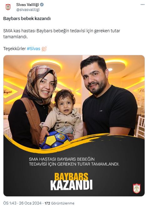 Sivas Valiliği sosyal medya hesabından Baybars Bebekle ilgili açıklamada bulundu.