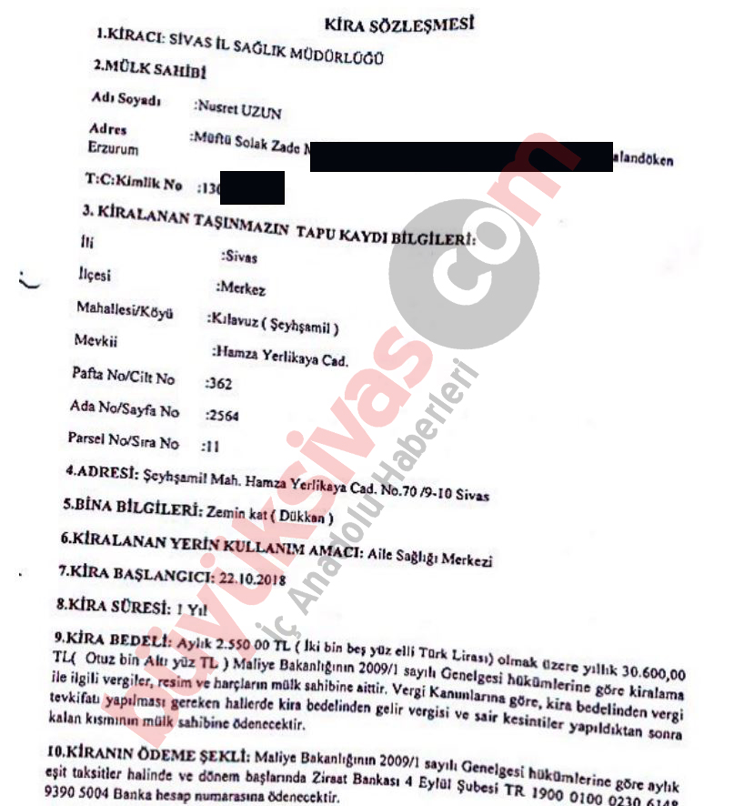 Sivas İl Sağlık Müdürlüğü bahse konu olan yeri 2018 yılında 1 yıllık olarak kiraladıktan sonra sözleşme 2019 yılında iki taraflı olarak fesh edildi.