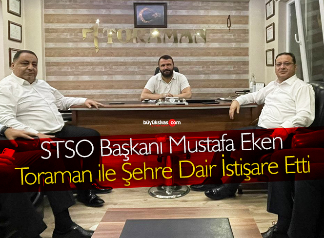 Sivas Ticaret ve Sanayi Odası Başkanı Mustafa Eken çalışmalarını sürdürüyor. Başkan olarak görev yaptığı yaklaşık 3,5 yıllık süreçte sık sık STSO üyelerini ve şehir eşrafını ziyaret eden Eken son ziyaretini Toraman Ajans Danışmanlık ve Reklam sahibi Murat Toraman'a gerçekleştirdi.