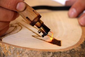 Emre Açıl, yaptığı eserlerin ebat ve boyutuna göre işçiliğinin değiştiğini belirterek, “Ahşap yakma ve naht sanatı üzerine bu işi yaklaşık 10 senedir yapıyorum.