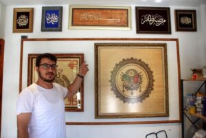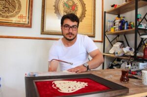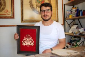 Sivas’ta küçük bir atölyede ahşap yakma ve naht sanatıyla uğraşan Emre Açıl, internet üzerinden yaptığı araştırmalarla naht sanatına gönül verdi.