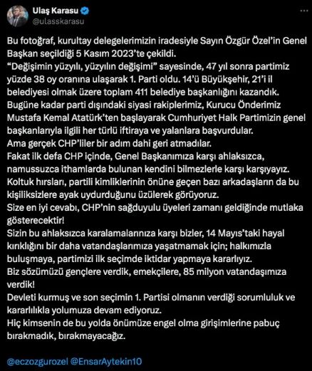Ulaş Karasu, X hesabından yaptığı paylaşımda şunları kaydetti: