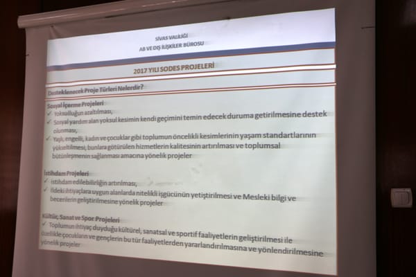 Teklif edilecek projelerle; Sivas'ta istihdam alanları oluşturmak, yoksulluğu azaltmak, kırsalda yaşayan vatandaşların kendi geçimini temin edecek duruma getirilmesine destek olmak, yaşlı, engelli, kadın ve çocuklar gibi toplumun öncelikli kesimlerinin yaşam standartlarının yükseltilmesini sağlamayı hedefleniyor. Genel Sekreter, AB ve dış ilişkiler bürosu tarafından sunulacak olan proje teklifleri ile ilgili olarak şube müdürlerinin gerekli çalışmaları yapmalarını ve kabul görecek proje teklifleri konusunda destek vermelerini istedi.
