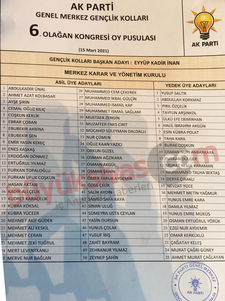 Dün gerçekleşen AK Parti Genel Merkez Gençlik Kolları 6.Olağan Kongresi’nde Cumhurbaşkanı Recep Tayyip Erdoğan’ın ve Genel Merkez Gençlik Kolları yeni Başkanı Eyüp Kadir İnan’ın tensipleriyle Sivaslı Nevzat Yüce, AK Parti Genel Merkez Gençlik Kolları MKYK üyeliğine seçildi.
