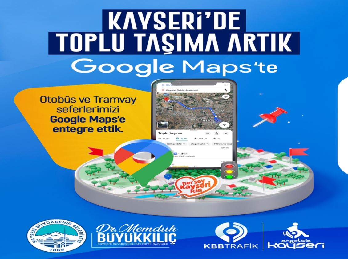 Yeni sistemle birlikte Kayserililer artık Google Maps üzerinden: