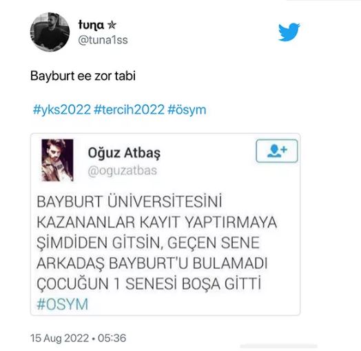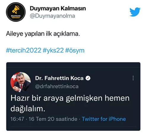 Sosyal medyada toplanan öğrencililerin büyük çoğunluğu, tercih ettiği hiçbir yerin gelmediğini belirtti. Hal böyle olunca ÖSYM, binlerce öğrencinin tepkisine madur kaldı. İşte öğrencilerin Twitter'da verdiği birbirinden ilginç tepkileri... (TGRT Haber)
