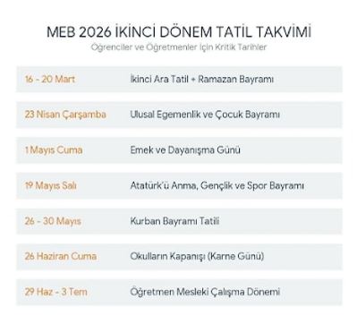 Ara Tatil ile Bayram Tatili Birleşiyor.. Milli Eğitim Bakanlığı’nın açıkladığı 2025-2026 eğitim öğretim yılı ikinci dönem takvimiyle birlikte öğrencileri sevindiren bir gelişme yaşandı.