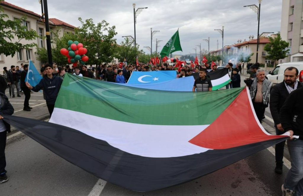 Sivas'ta Filistin Dayanışma İnisiyatifi tarafından düzenlenen yürüyüş Tarihi Tren Garı'ndan kent meydanına kadar sürdü. Yürüyüşe katılan vatandaşlar Filistin'de yaşanan zulüm ve Doğu Türkistan'daki insanlık dramına dikkat çekmek amacıyla slogan attı. Yürüyüşün ardından Tarihi Buruciye Medresesi önünde toplanan kalabalık, ellerindeki bayraklarla Filistin ve Doğu Türkistanlılara destek verdi. Ortaokul öğrencisi Elif Yaren Şahin ve öğretmen Yusuf Öztürk şiirler okudu.
