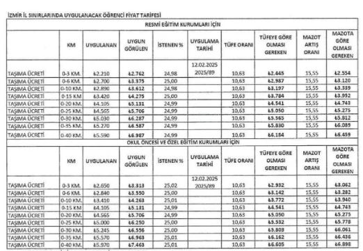 İzmir Büyükşehir Belediyesi Meclisi’nde görüşülen ve onaylanan yeni öğrenci servis tarifesiyle birlikte 2025-2026 Eğitim-Öğretim Yılı ücretleri netleşti.